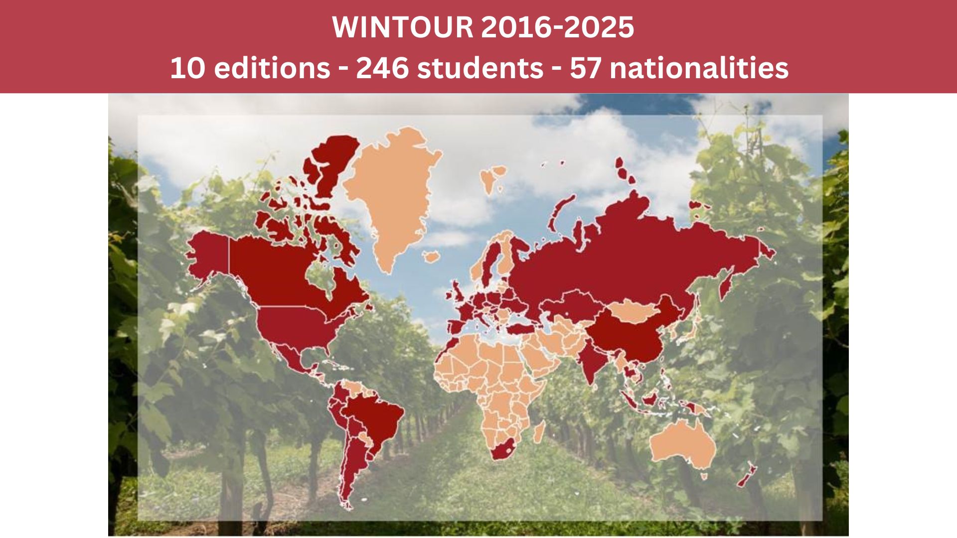 The map below presents the diversity of the WINTOUR programme by showing all students’ nationalities so far.